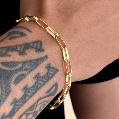 Pulseira Cadeado Alongado 4mm 5gr Fecho Duplo Banhado A Ouro 18k